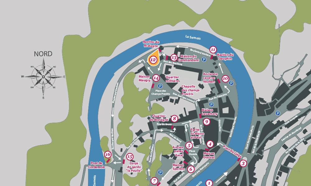Die « Bastion de Bretagne » ist ein Überbleibsel der Stadtmauer aus dem 17. Jahrhundert. Es ist schade, dass sie für das Anlegen des « Boulevard Heynen » durchbohrt wurde. Man sieht immer noch einen Teil der Stadtmauer, die durch viele Schiessscharten versehen ist und wie durch ein Wunder beim Abriss in 1856 erhalten blieb.